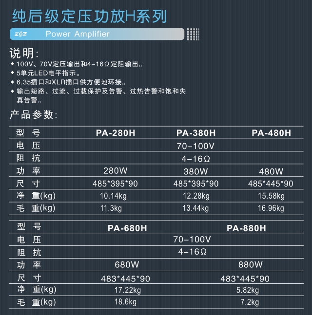 Model: PA-280H~PA-880H